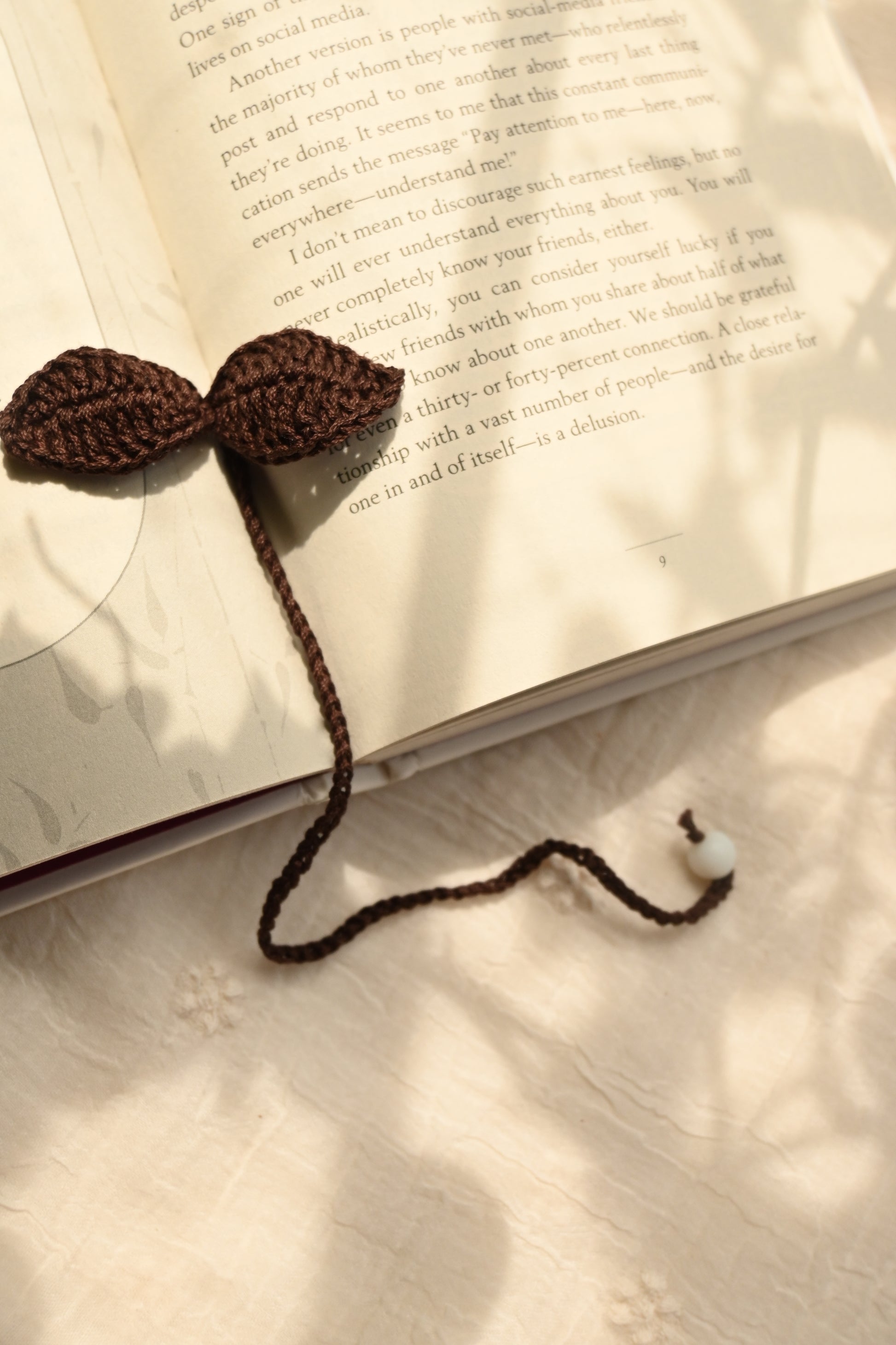 Brown Leaf Crochet Bookmark – Handmade Earthy Bookmark for Readers & Writers
