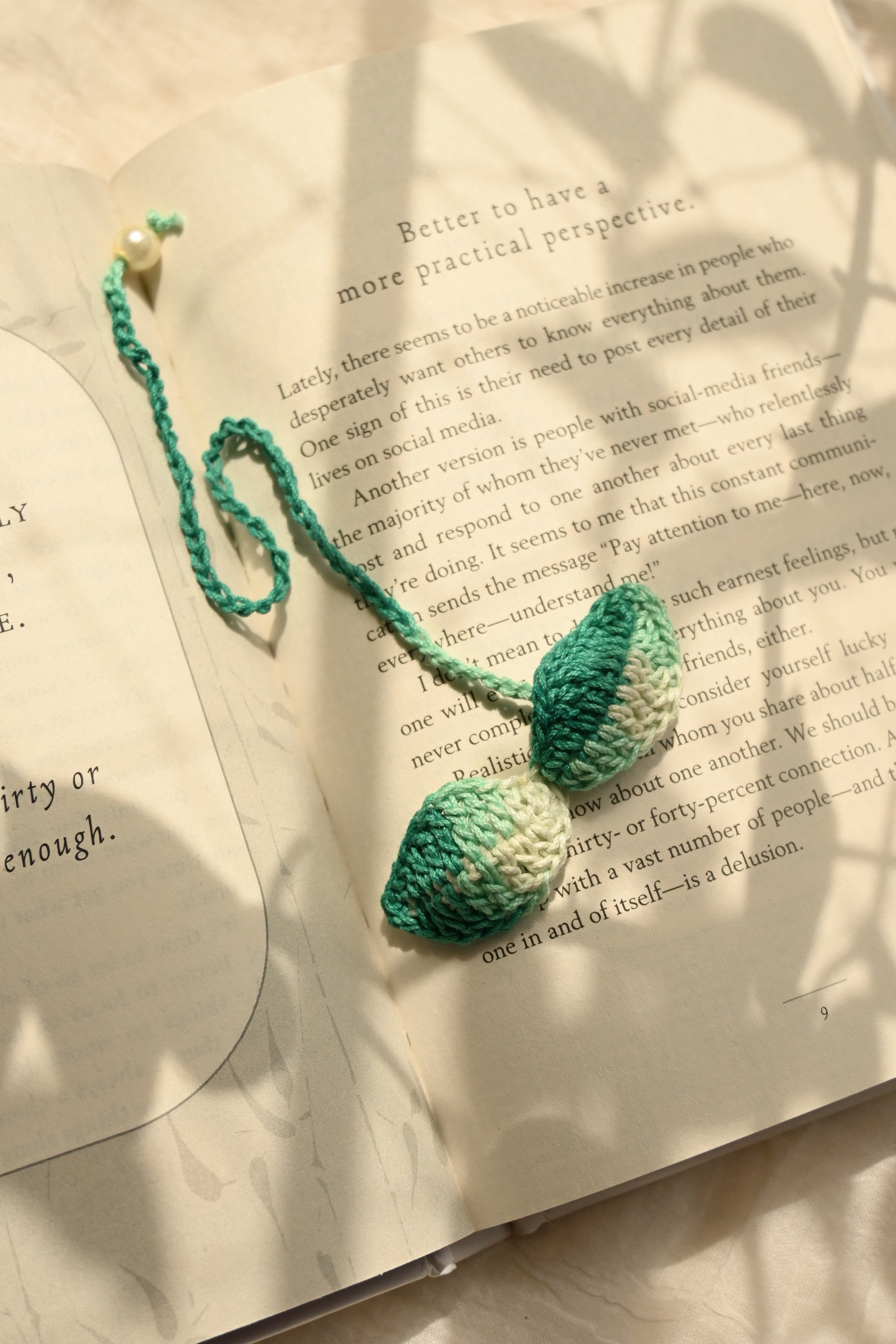 Designed with two beautifully stitched crochet leaves connected by a textured stem-like string, it not only marks your page but also adds an earthy, aesthetic touch to your reading experience. Lightweight and gentle on pages, this bookmark is perfect for daily readers, journal writers, or eco-conscious gift-givers.