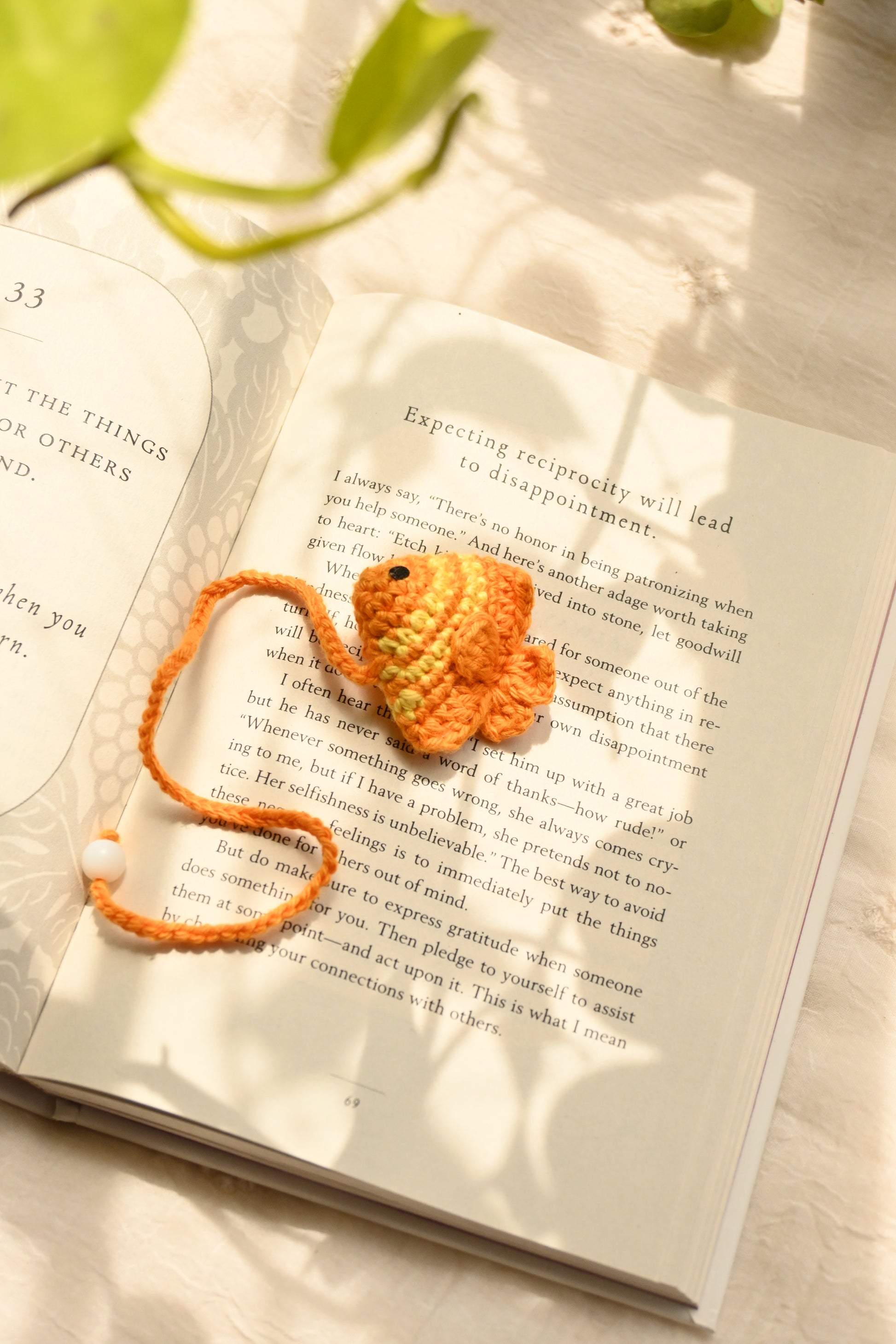 Brighten your bookshelf with the sunshine charm of our Orange Fish Crochet Bookmark – a handcrafted, one-of-a-kind piece made to spark joy every time you read. Carefully crocheted using soft, high-quality cotton yarn in cheerful orange and yellow tones, this adorable fish-shaped bookmark adds a burst of personality to your books while keeping your place safe.