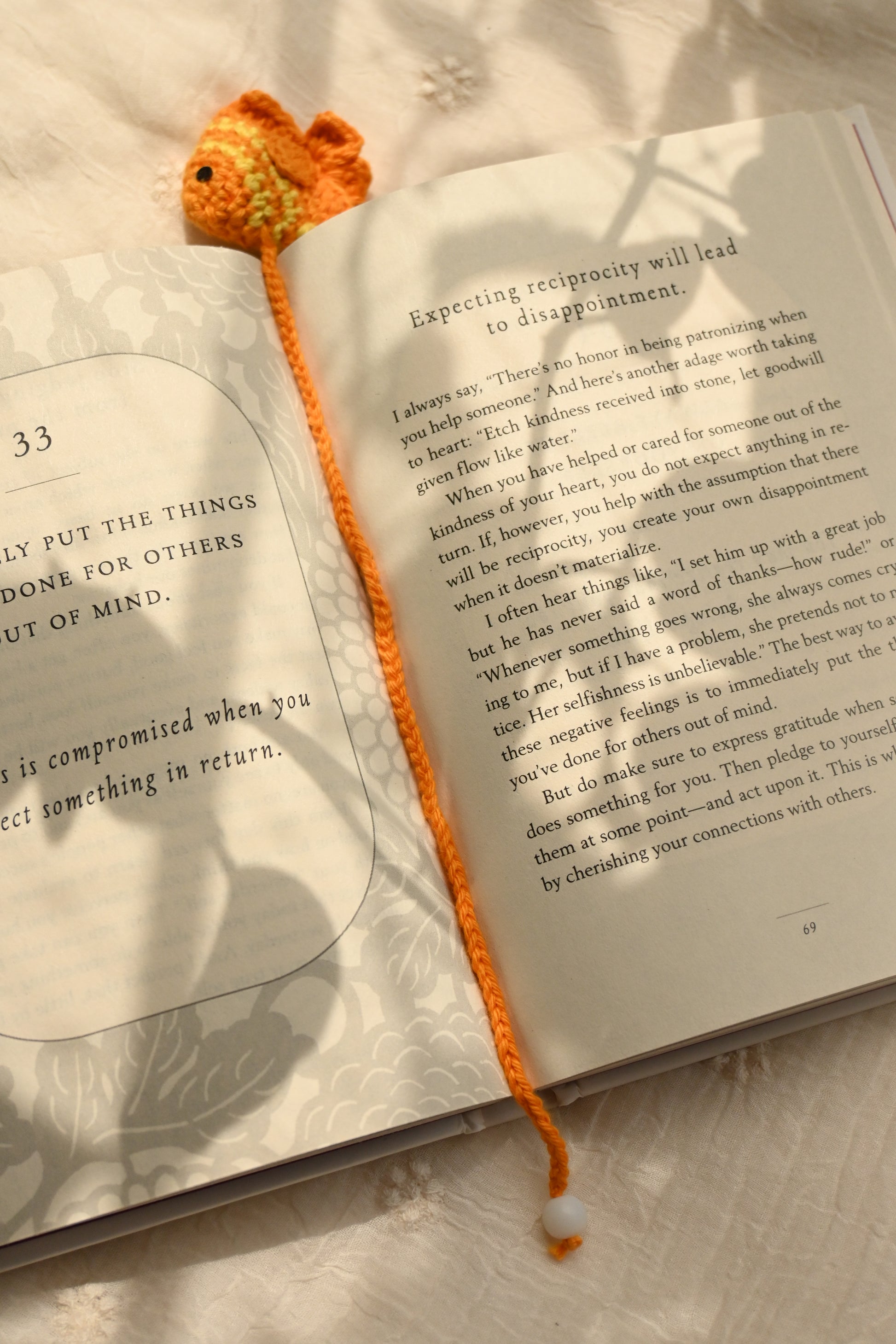 Orange Fish Crochet Bookmark – Handmade Yarn Bookmark for Journals & Books