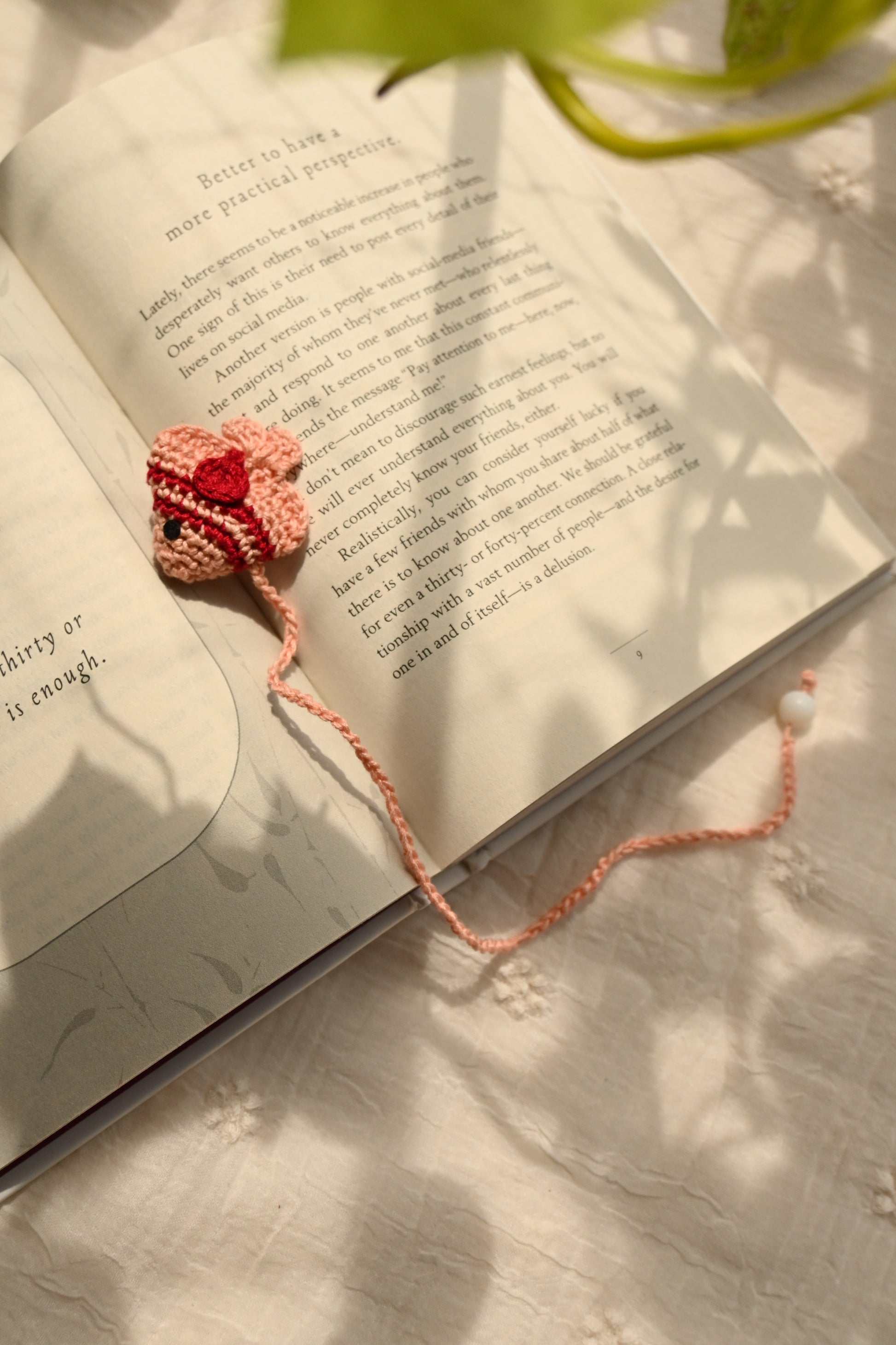 Add a soft and sweet touch to your reading with our Pink Fish Crochet Bookmark, a handcrafted piece made with love for book lovers and stationery fans. Featuring delicate shades of blush pink and rich red, this fish-shaped crochet bookmark blends charm with function, making your reading moments extra special.