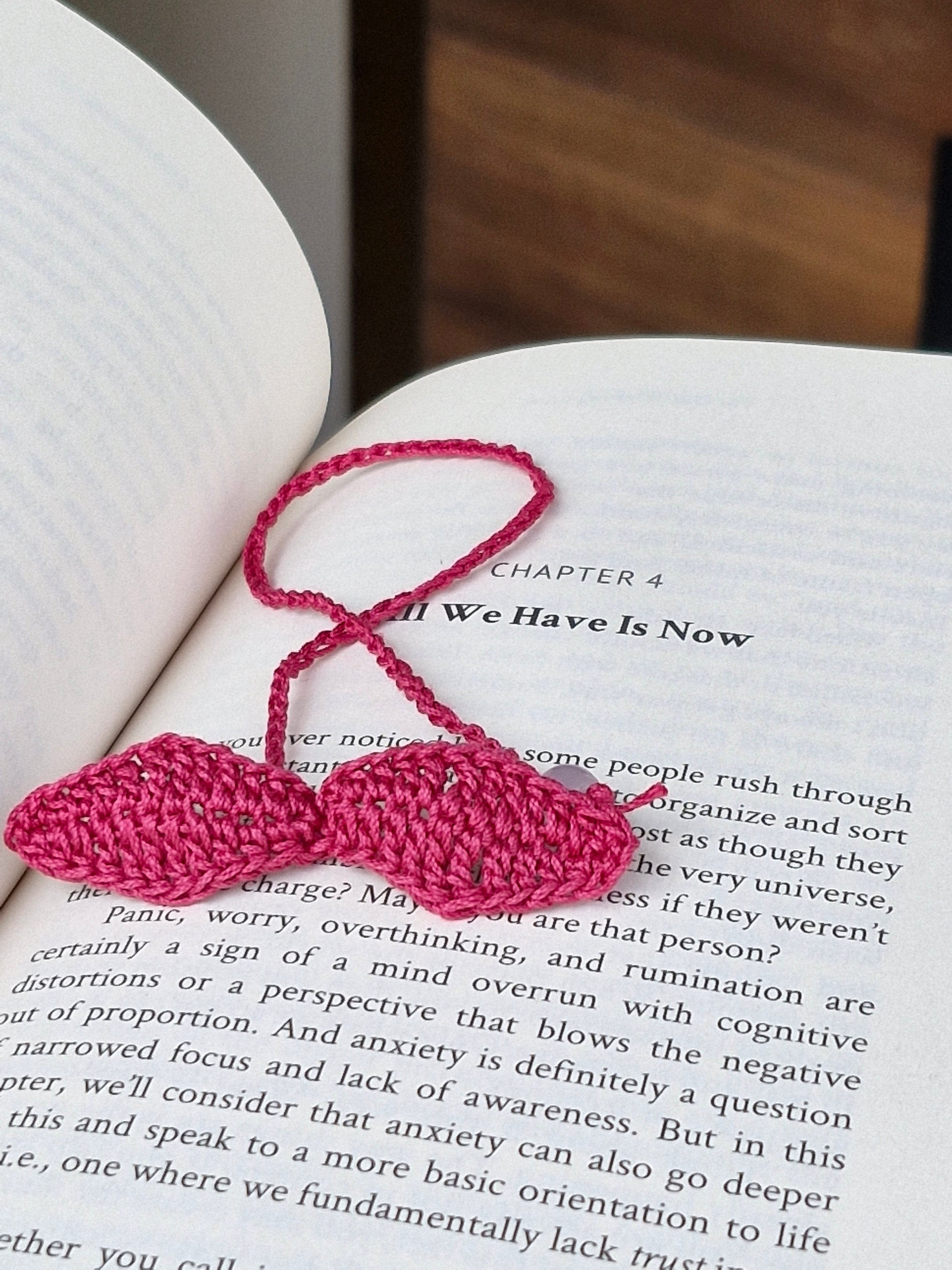 Add a playful touch to your reading with this handmade pink leaf crochet bookmark. Made with love and care, this unique bookmark will keep your place while adding a touch of whimsy to your book. Perfect for the book lover in your life!